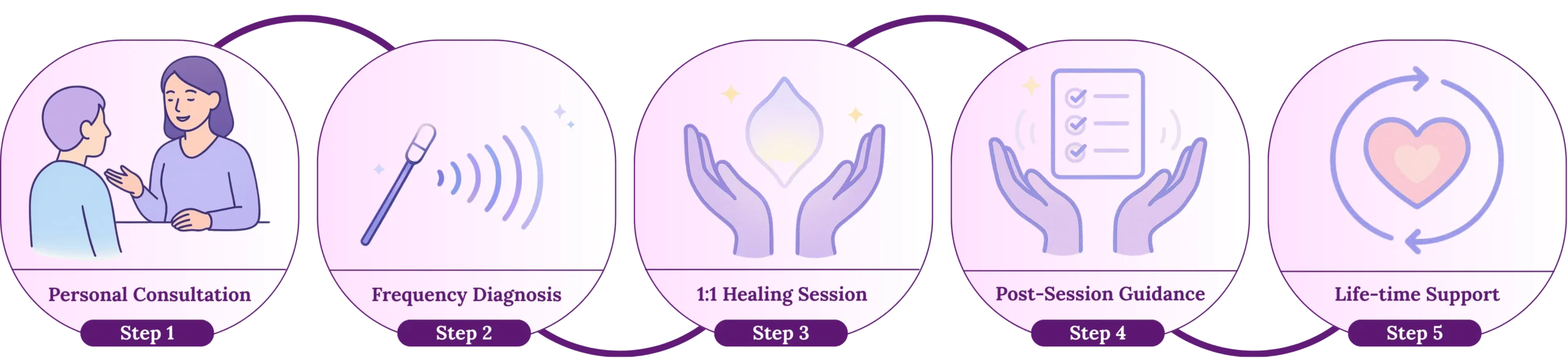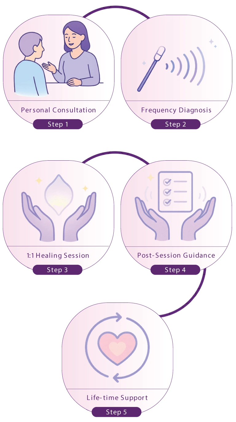 A simple, guided process designed to make your healing experience seamless and transformative.
